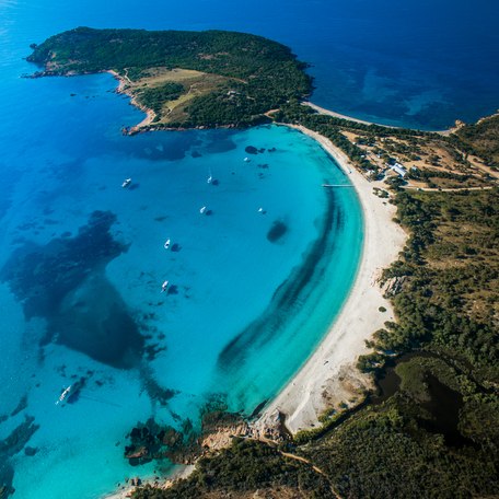 For nights not spent at the marina, there is a myriad of pretty anchorages to be found in secluded coves and sheltered bays all around the coastline of this beautiful island. The bay of Pinarellu Bay is sheltered from the winds from northwest to southerly and is especially popular with the yachting elite due to its good anchoring in shallow sandy waters.